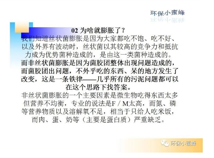 01 啥是非絲狀菌膨脹? 非絲狀菌膨脹是污泥膨脹問題中除去絲狀菌膨脹之外的情況,外觀看起來跟絲狀菌膨脹的情形差不多,都表現(xiàn)為污泥沉降性能嚴重下降。 03 如何應對? 非絲狀菌膨脹可以通過鏡檢、SVI值進行判斷。 發(fā)生膨脹,作為應急措施,一般會選擇投加助沉劑或者是殺菌劑,但這是治標不治本的方法,且投加...