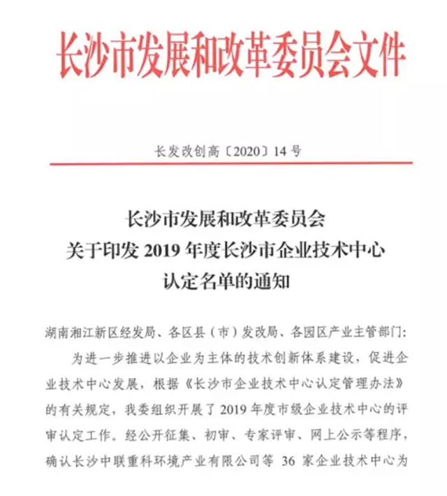 近日,長沙市發(fā)展和改革委員會公布了2019年度長沙市企業(yè)技術(shù)中心認定名單的通知,盈峰環(huán)境旗下全資子公司長沙中聯(lián)重科環(huán)境產(chǎn)業(yè)有限公司榮登榜首,成為長沙市企業(yè)技術(shù)與產(chǎn)業(yè)創(chuàng)新平臺基地。我司張斌博士被長沙市發(fā)展和改革委員會聘任為長沙市級企業(yè)技術(shù)中心主任,劉權(quán)先生被長沙市發(fā)展和改革委員會聘任為長沙市級企業(yè)技術(shù)...