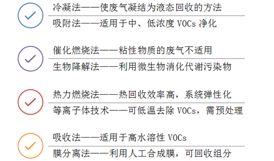 在VOCs治理領域,公認的手段包括源頭削減、過程控制和末端治理等三個環(huán)節(jié)。從目前我國VOCs治理的進程來看,減排工藝對科技創(chuàng)新要求較高,過程控制和末端治理相比更偏向末端治理環(huán)節(jié),這也直接帶動了VOCs處理設備市場的繁榮。 目前的主流工藝: 按照市場應用情況來看,吸附法、催化燃燒法占比都比較高,同時生...