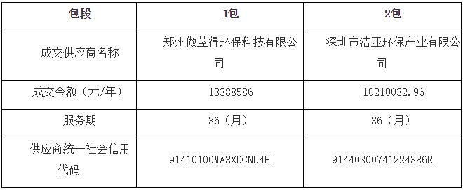 湖北省監(jiān)利縣城區(qū)環(huán)衛(wèi)作業(yè)市場化項目發(fā)布評標結(jié)果公示,鄭州傲藍得環(huán)??萍加邢薰精@得1包,中標金額1339萬/年,服務(wù)期限36個月。 具體中標信息如下: 附項目信息: 服務(wù)內(nèi)容:監(jiān)利城區(qū)清掃保潔、生活垃圾收集運輸、公廁保潔維護、水域保潔、中轉(zhuǎn)站管理、牛皮癬清理。 第1包: (1)項目包編號:1包 (2...