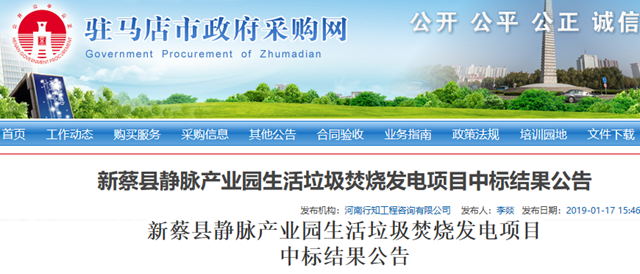 河南省新蔡縣靜脈產(chǎn)業(yè)園生活垃圾焚燒發(fā)電項目發(fā)布中標結(jié)果公告,中國光大國際有限公司成為第一中標候選人,垃圾處理補助單價58元/t。 中標候選人結(jié)果具體如下: 第一中標候選人:中國光大國際有限公司 中標價:垃圾處理補助單價58元/t 第二中標候選人:江蘇大吉環(huán)保能源大豐有限公司 中標金額:垃圾處理補助單...