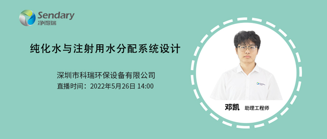 5月26日下午14:00,由凈得瑞技術(shù)直播主講人鄧凱為大家?guī)淼摹都兓c注射用水分配系統(tǒng)設(shè)計》主題直播,將在制藥網(wǎng)、環(huán)保網(wǎng)及凈得瑞微信視頻號同步開播。圖一 《純化水與注射用水分配系統(tǒng)設(shè)計》點擊圖片進(jìn)入直播間 本次直播內(nèi)容介紹: 1、品牌介紹——主營產(chǎn)品、系統(tǒng)服務(wù) 2、法規(guī)要...