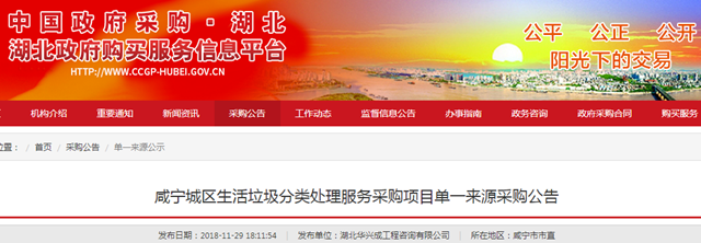 湖北咸寧城區(qū)生活垃圾分類處理服務(wù)采購項(xiàng)目發(fā)布單一來源采購公告,擬選擇啟迪桑德環(huán)境資源股份有限公司為單一來源供應(yīng)商,項(xiàng)目預(yù)算500萬。 據(jù)悉,2016年10月,咸寧市人民政府授權(quán)咸寧市城市管理執(zhí)法局與啟迪桑德環(huán)境資源股份有限公司簽訂了《咸寧市城區(qū)環(huán)衛(wèi)作業(yè)PPP項(xiàng)目特許經(jīng)營權(quán)協(xié)議》。 城市生活垃圾分類收...