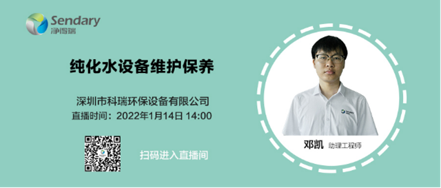 良好的維護(hù)保養(yǎng)是純化水設(shè)備長(zhǎng)期穩(wěn)定運(yùn)行及延長(zhǎng)設(shè)備使用壽命的保障。2022年1月14日14:00,凈得瑞帶來(lái)的《純化水設(shè)備維護(hù)保養(yǎng)》直播分享,幫助大家快速了解純化水設(shè)備維護(hù)保養(yǎng)工作內(nèi)容以及如何有序開(kāi)展工作。圖一 《純化水設(shè)備維護(hù)保養(yǎng)》(點(diǎn)擊圖片進(jìn)入直播間) 純化水設(shè)備是保障生物制藥、醫(yī)療器械等行業(yè)用水...