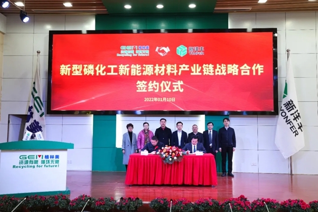 2022年1月10日,格林美股份有限公司(以下簡稱“格林美”)與新洋豐農(nóng)業(yè)科技股份有限公司(以下簡稱“新洋豐”)在格林美荊門園區(qū)正式簽署《磷資源化工新能源材料產(chǎn)業(yè)鏈一體化戰(zhàn)略合作框架協(xié)議》。荊門市人民政府副市長李文震,市政府副秘書長傅強,鐘祥市市長楊孟...