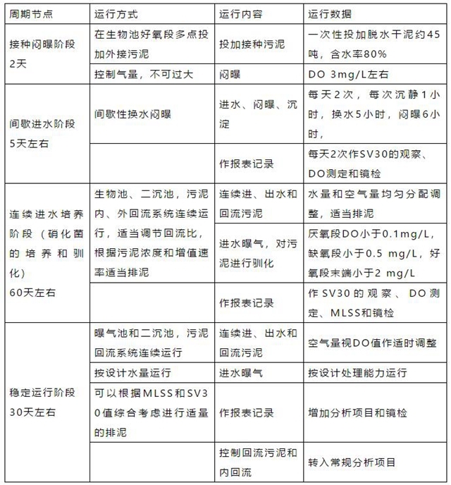 本手冊是針對A2O工藝調(diào)試工作編寫的,可供污水調(diào)試及營運工作人員使用! 1、培養(yǎng)與馴化 由于調(diào)試階段進水量較少,進水變化幅度較大。為確保污泥培養(yǎng)效果,縮短調(diào)試周期,一般采用外接碳源方式接種培養(yǎng)活性污泥。外接菌種首選進水質(zhì)相近,運行較好的同類型工藝污水廠重力濃縮后污泥或脫水污泥。 1、污泥接種馴化時間...